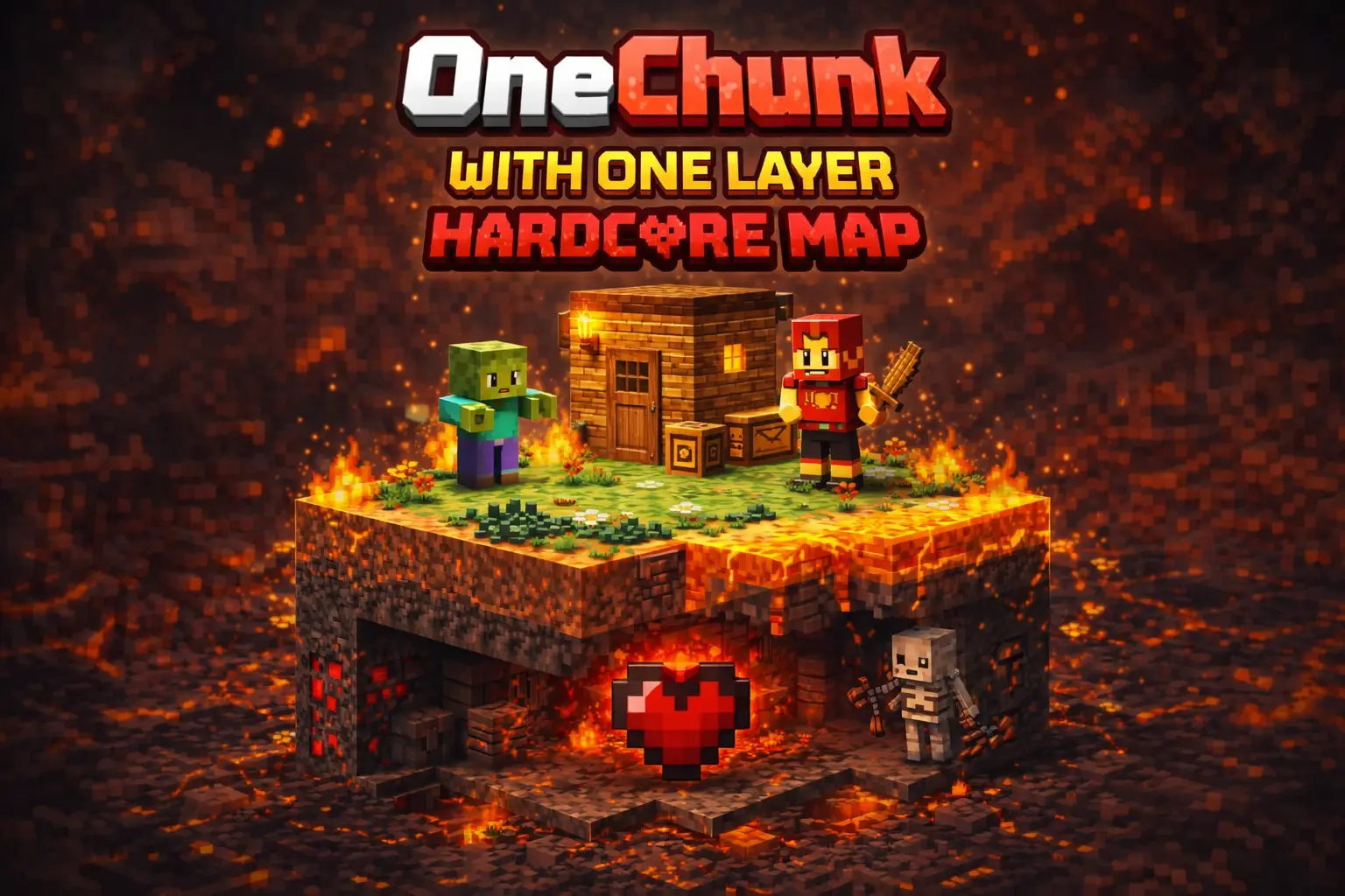 OneChunk with One layer Hardcore Map is the kind of challenge that sounds like a meme until you actually picture living in it. You’ve got one chunk—16×16 blocks—and only one playable layer. That means no underground safety net, no digging for surprise resources, no “I’ll just mine down and reset.” You’re stuck on a thin slice of world with nowhere to run, and since it’s hardcore, the pressure is real. One mistake can end the whole run, and the map is literally designed so there’s no escape route to save you from your own bad decisions.