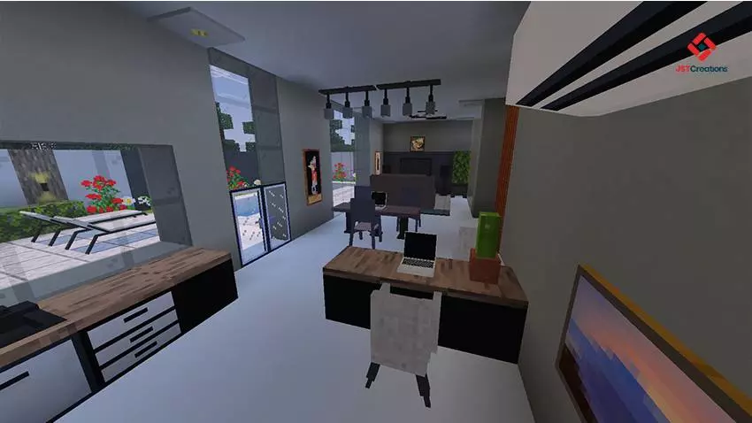This map also fits really well if you like styling your worlds visually. The description mentions it’s best played with your favorite texture or shader pack, and that makes sense for a modern build like this because lighting, reflections, and clean materials can make the house look even better. If you enjoy screenshots, tours, or just hanging out in your builds, using a texture/shader pack can make the interior furniture and exterior design pop way more.