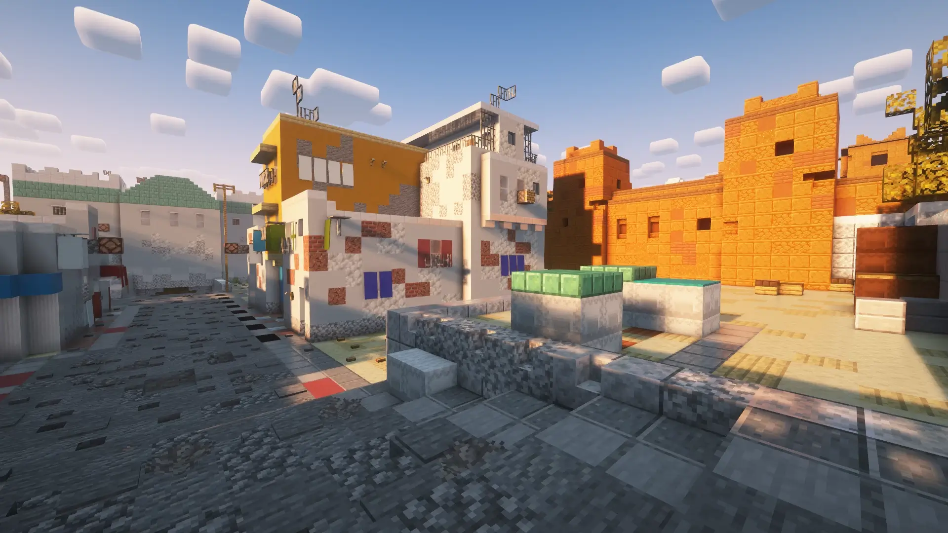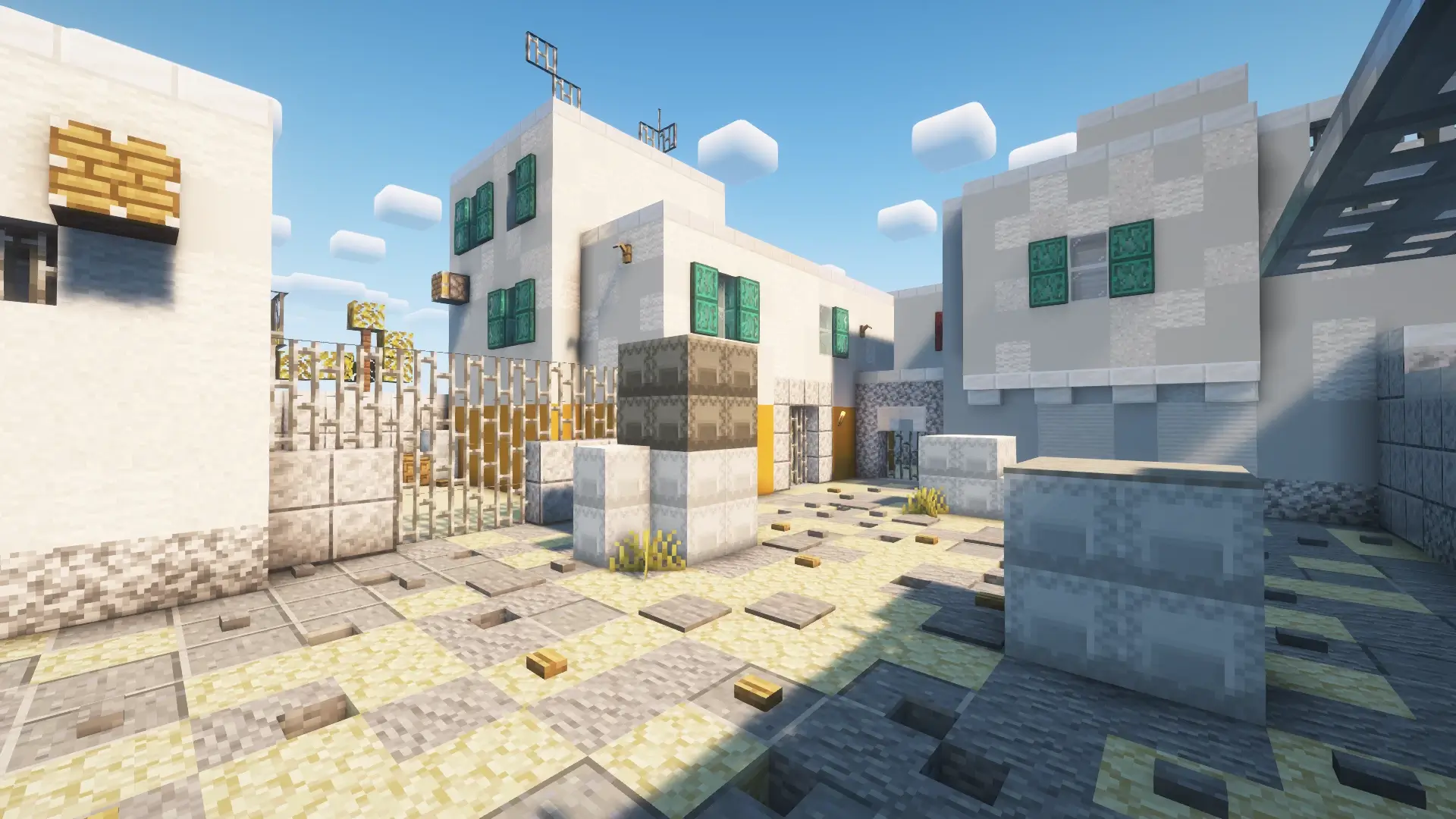 Hook it like a real round. Grab bows/crossbows and run a “pistols” opener down Cat for a fast A hit, or slow-walk B Tunnels and pop Window together for a quick plant-style rush (bring your own rules/commands if you want full bomb/defuse—this map is the arena). Mid control matters: hold Top Mid with cover, jump Xbox to cut rotations, or pinch CT with a split so defenders can’t turtle Ramp. Long fights feel classic—smoke (snowball items work great as DIY “nades”), swing off a teammate’s peek, and use Pit/Car to bait angles before you scale to A Site.
