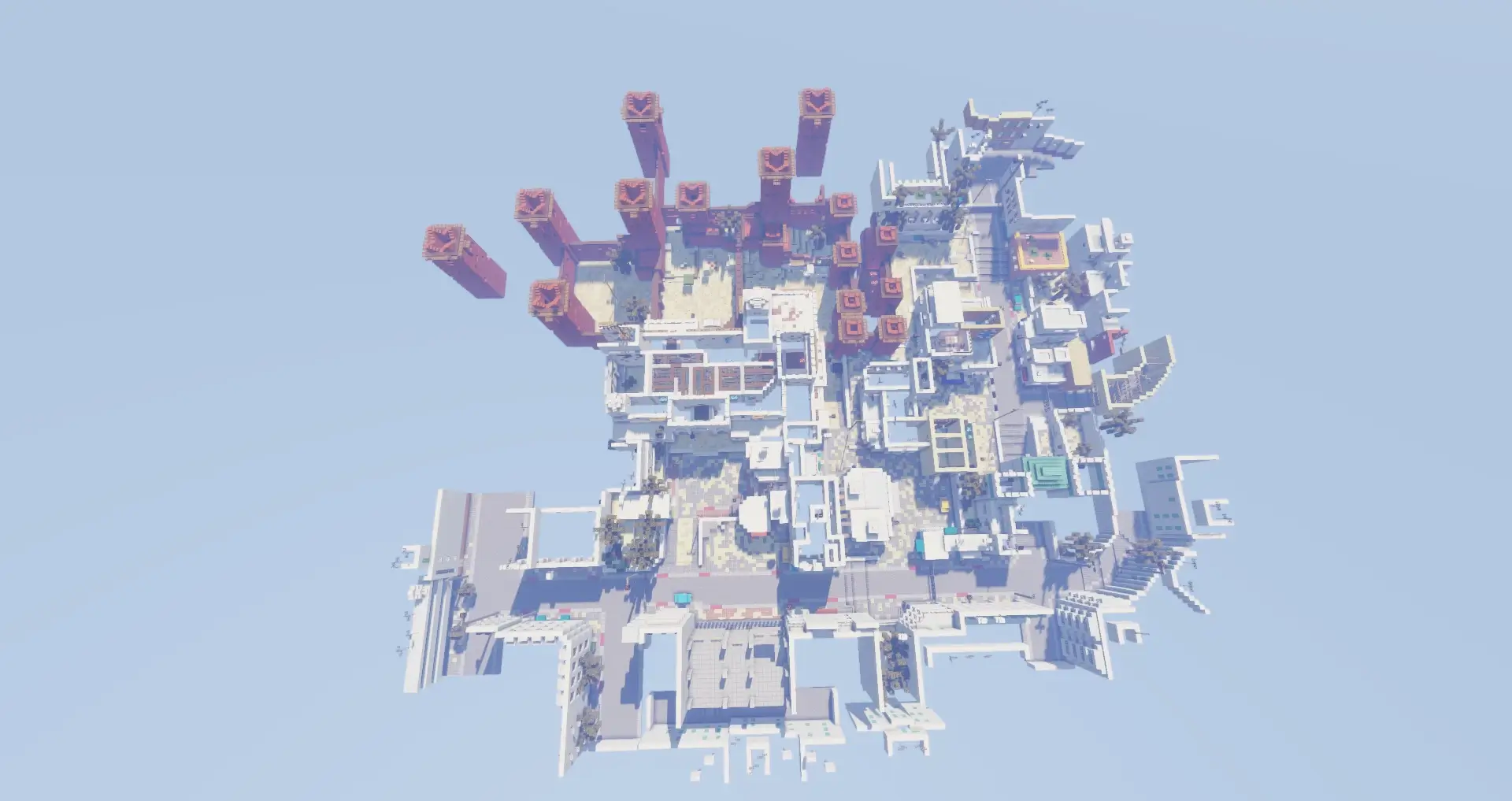 You spawn, hear footsteps at Long, and your muscle memory kicks in. This Dust 2 rebuild nails the CS2 flow inside Minecraft Bedrock, so every callout actually means something: T Spawn → Long Doors/Pit, Cat/Short up to A Ramp/Goose, Top Mid → Xbox → Mid Doors/CT, and Upper/Lower B Tunnels → Window/Back Plat. It looks and plays like the map you grew up on—just with block physics and Bedrock movement.