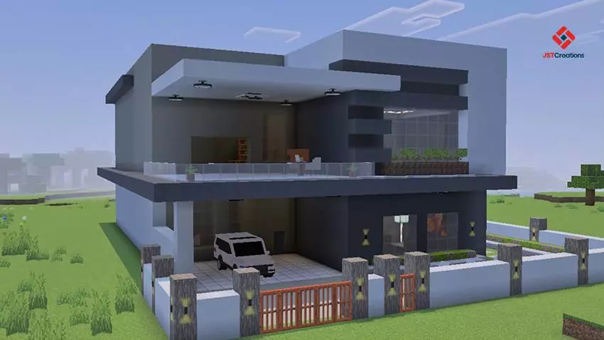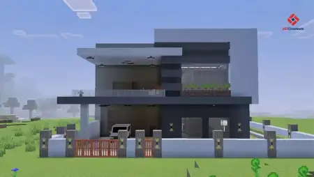 Modded Modern House #8 (With Furnitures) Map with a house, a car, a beautiful yard. This will be your base, your new home in Minecraft with a furniture mod.