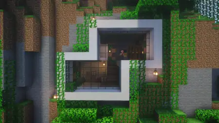 Simple Modern Jungle House Map with a really cool house right in the mountain among the jungle.