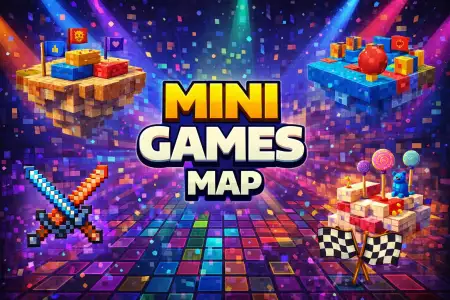 Singleplayer and Multiplayer Minigames Map is a Minecraft Bedrock minigame hub with multiple arenas, smooth systems, and fair gameplay built for quick matches whether you’re solo or playing with friends. You jump in, pick a minigame, follow the on-screen instructions, and start competing or practicing right away.