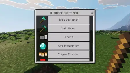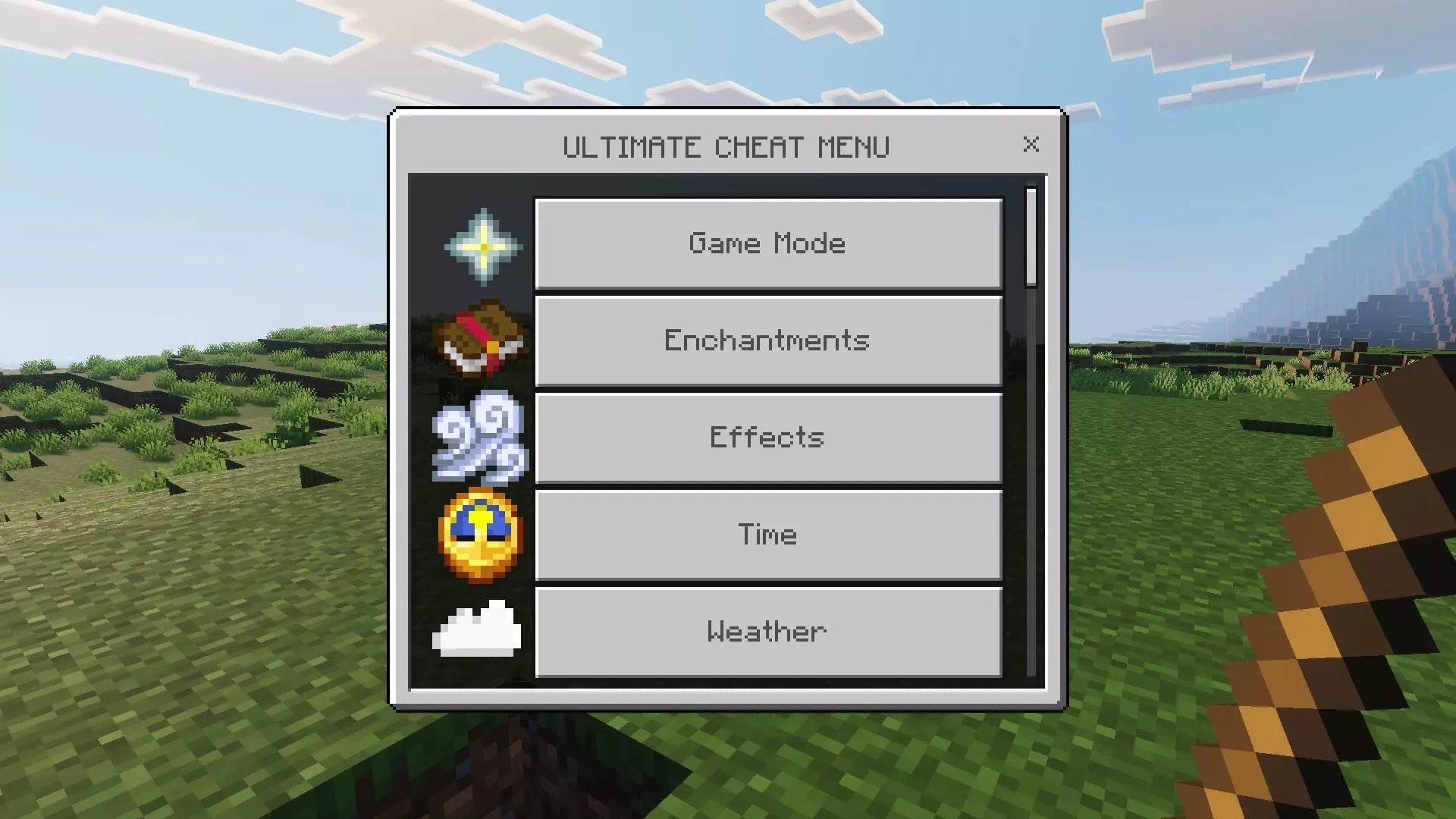 Ultimate Cheat Menu Addon is a very useful menu with cheat features for changing time, teleport, weather, effects, X-Ray, obtaining blocks, items and XP.