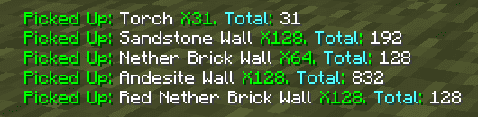 Out in the Nether, it keeps quartz and gold runs honest, and on End trips it’s perfect for tracking chorus fruit, rods, or random loot without losing momentum. Building feels smoother too. You farm wood or stone, watch the feed confirm numbers, and head right back to placing without the constant menu dance. There’s nothing to learn and nothing to babysit—just a clean little list that appears when you need it and stays out of the way when you don’t.
