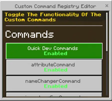 Everything respects permission levels, so only true admins can fire the commands. And it’s not all-or-nothing; the addon ships with a clean toggle menu at /commandconfig. Pop it open, flip individual commands on or off, and you’ve basically got a per-world ruleset you can tune between events, build nights, and boss runs. The state persists, too. If you disabled something last session, it stays off next time you load in until you choose to bring it back. Fresh worlds start with everything enabled by default so you can discover what you actually need, then pare it down.