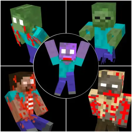 Mo’ Zombies Mod — crank the danger and make every sunset a decision. In Bedrock, this pack throws three brutal variants into your path and suddenly your “easy lap around the village” becomes a gauntlet. Lava Zombies leave fire in their wake and punish sloppy positioning near wood builds; push them wrong and your fence line lights up. Toxic Zombies tag you with poison, so a bad corner turns into a slow bleed if you don’t reset. Armored Zombies just keep walking—you feel every extra swing while the rest of the horde closes.