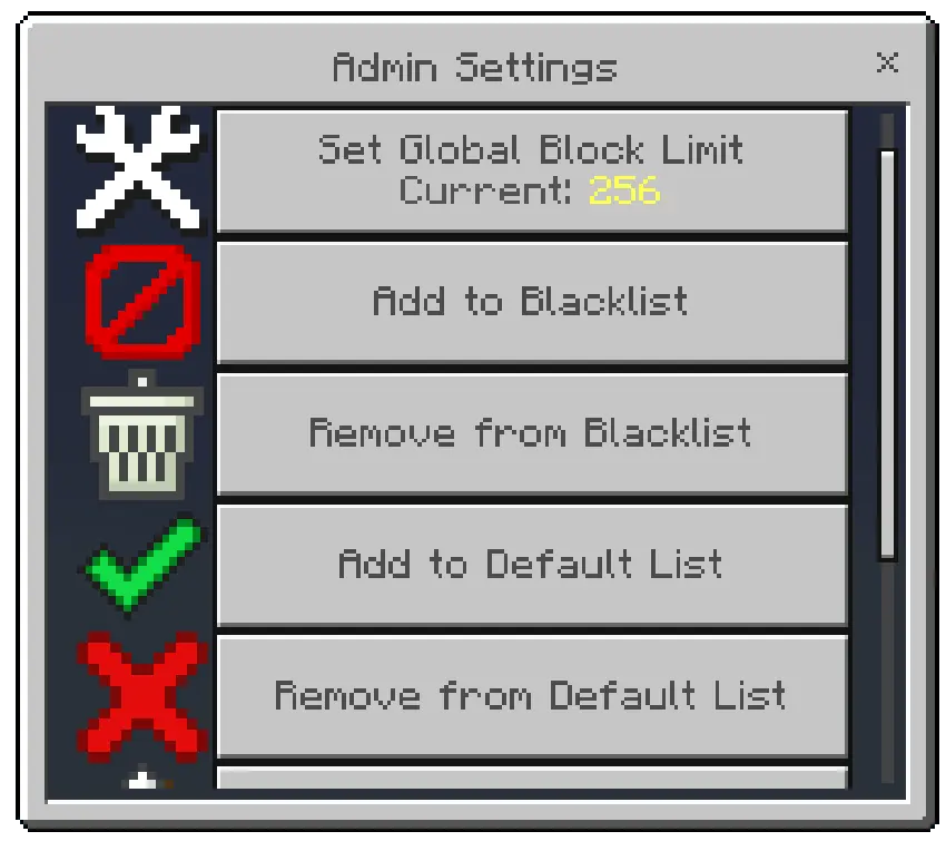 The power move here is control. Each player gets their own menu and can flip exactly how excavation behaves—what blocks are allowed, how far the break spreads, and which shape to use for the job. Clearing ore? Switch to Vein so it crawls through matching blocks and stops. Wood run? Tree Capitator drops the whole trunk with one swing. Need a hallway fast? Line punches straight ahead, Small Tunnel makes a tidy 1×2 scout path, and Large Tunnel opens a clean 3×3 for rails, water streams, or beacon runs. Because it processes blocks in little ticks, big digs stay stable even on busy realms.