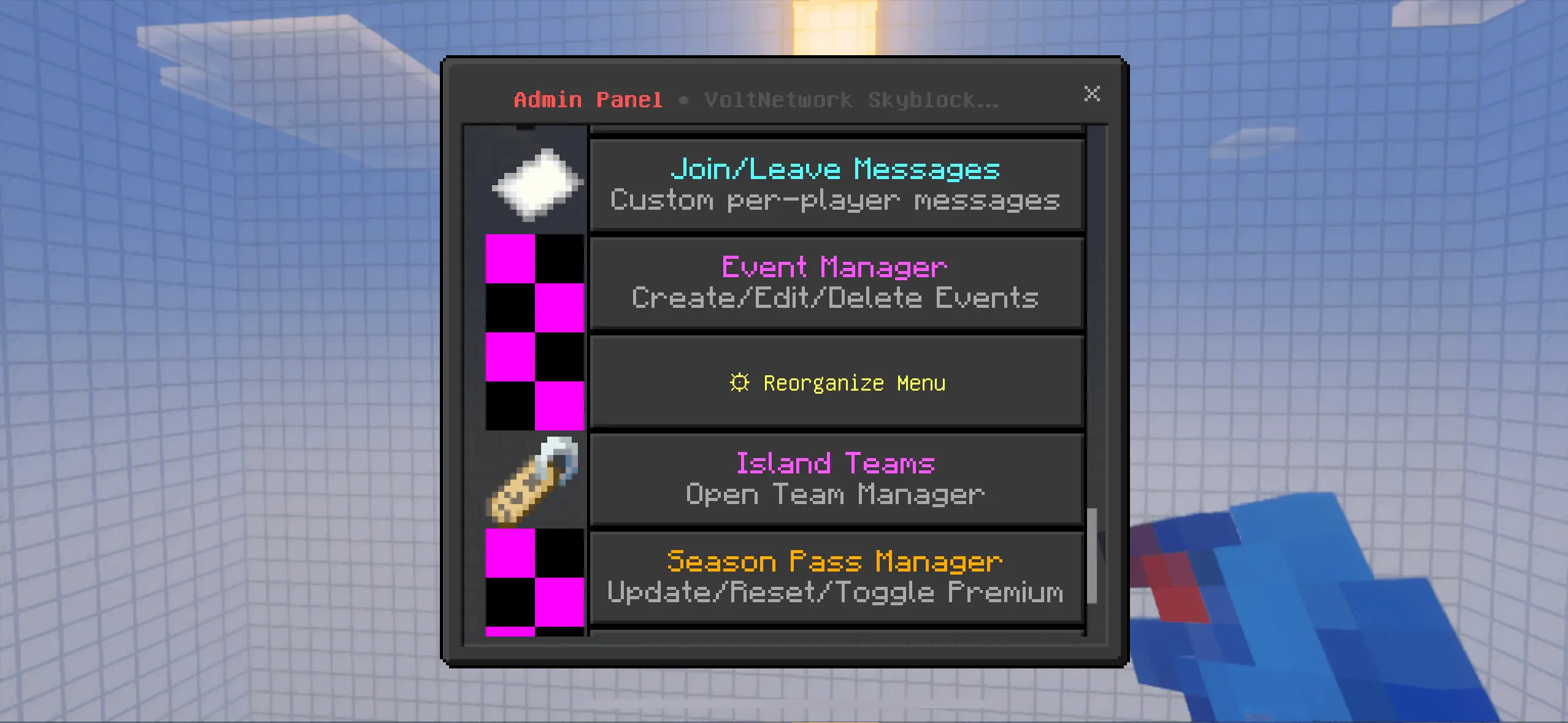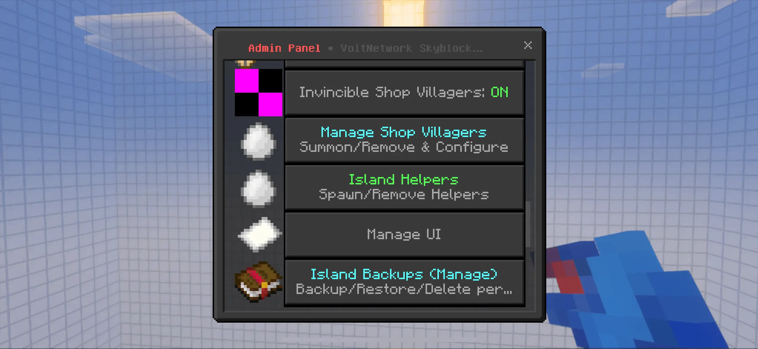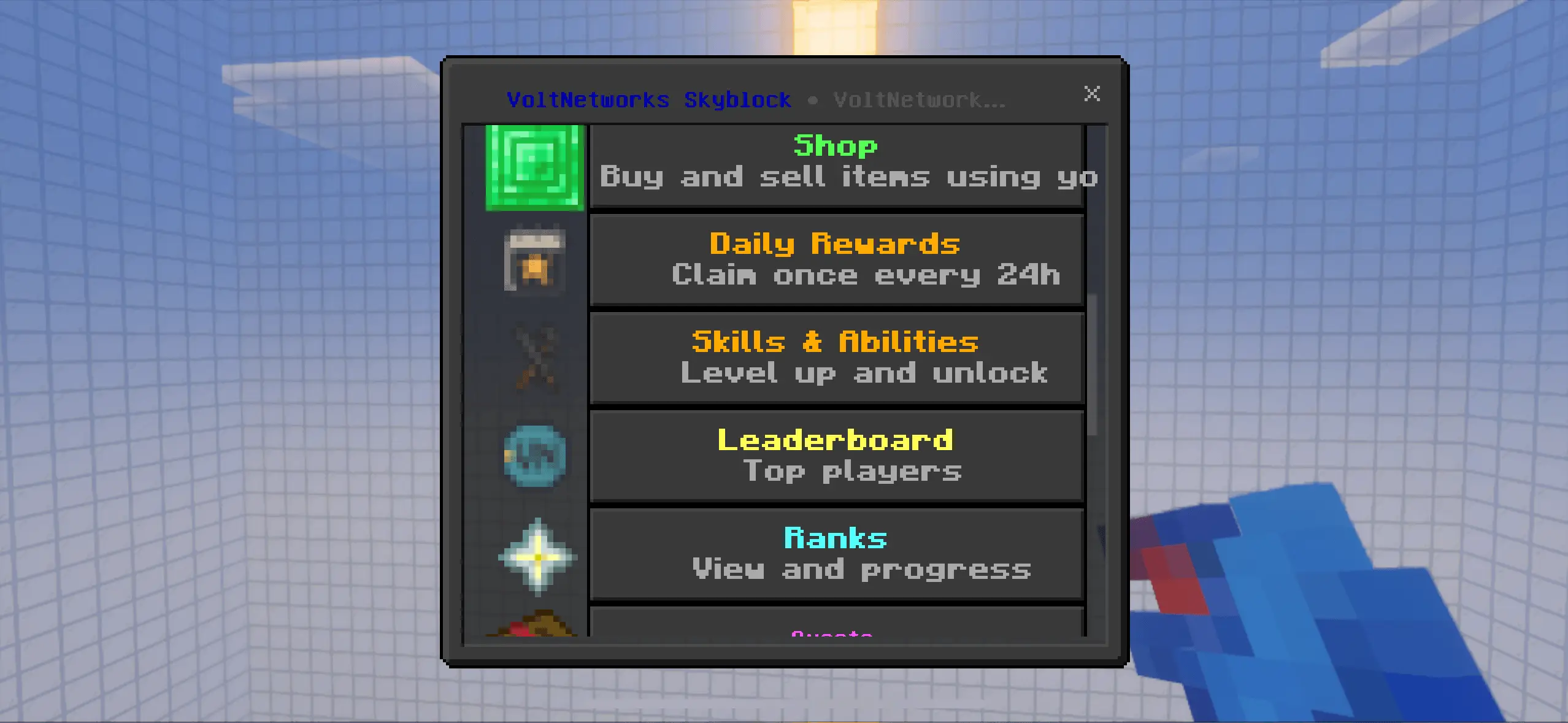 VoltNetworks Skyblock gui Mod turns the classic “tree-on-a-rock” start into a full progression loop you can actually live in. Spin up a fresh island through a polished UI, then push upgrades from the same menu instead of juggling commands or datapack lore. The addon tracks your climb from early cobble and crops to late-game automation, and it does it without the usual stutter—its command logic and scripting are tuned to stay snappy even when the server’s busy.
