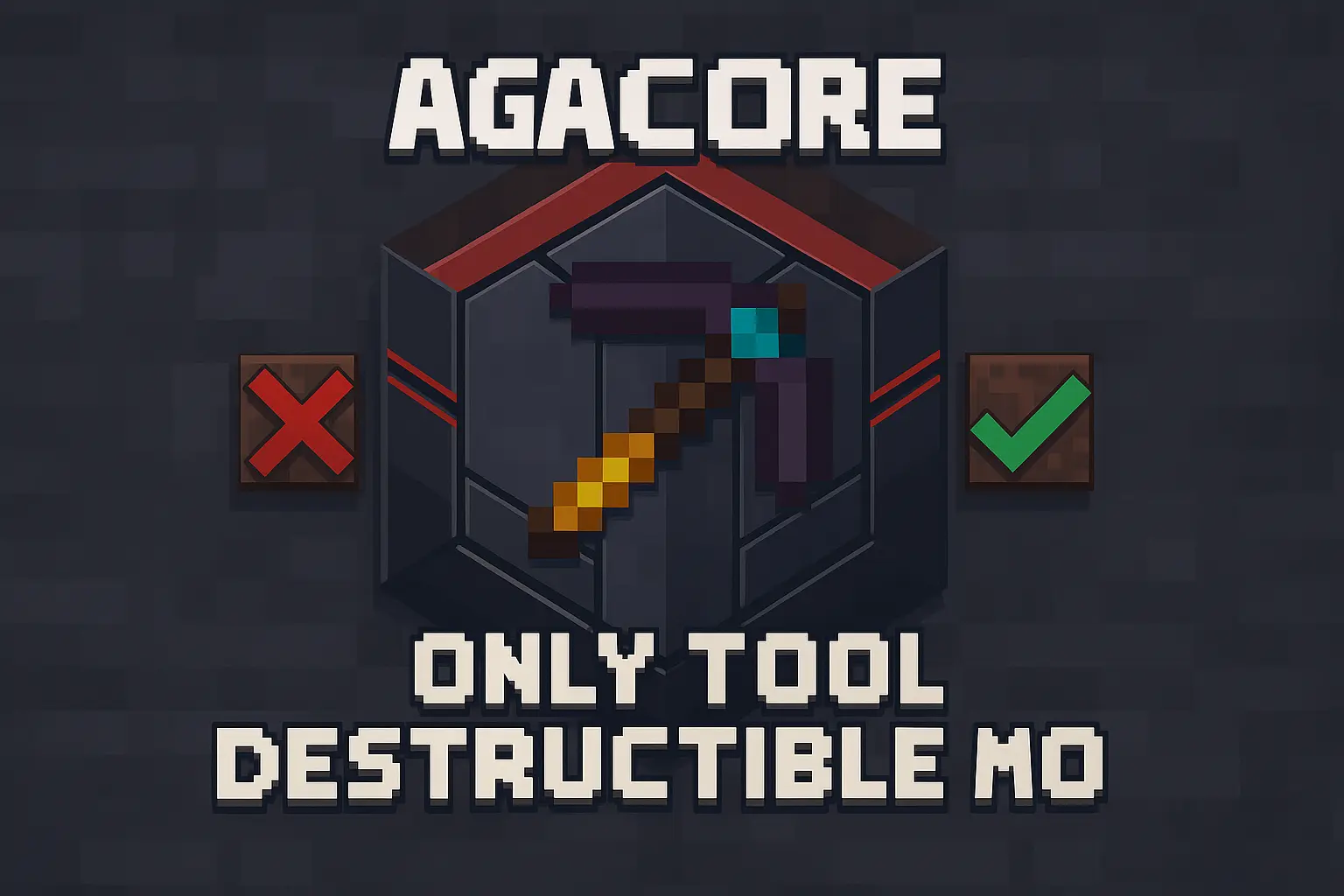 AgaCore Only Tool Destructible Mod is for people who like control. Instead of every block crumbling to whatever you swing at it, this system lets you say: “No, this one only goes down to the right tool.” Using the custom aga:only_tool_destructible component, you can lock a block behind specific tool types like pickaxe, axe, shovel, hoe, sword, shears, or even mace, and tie it to proper tier rules so wooden junk can’t cheat its way through late-game content.