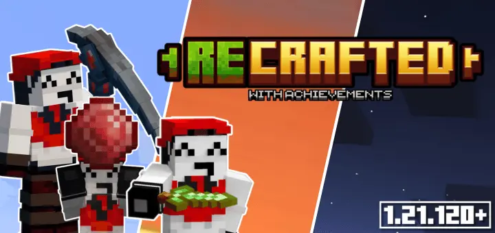 ReCrafted Mod is built for players who like the base game, but want just a bit more to chew on without turning their world into a completely different modpack. Instead of throwing crazy systems at you, ReCrafted feels like an extended version of vanilla Minecraft: same vibe, same rules, just more ways to progress, gear up, and shape your world over time. You still play survival the usual way, you still unlock achievements normally, but moment to moment you’ll start noticing extra choices and small tweaks that keep a new world from feeling “samey” by day three.