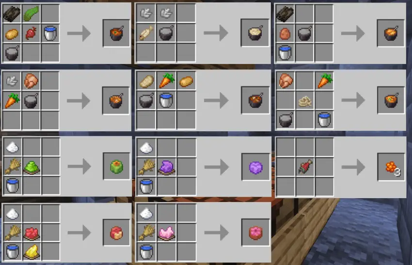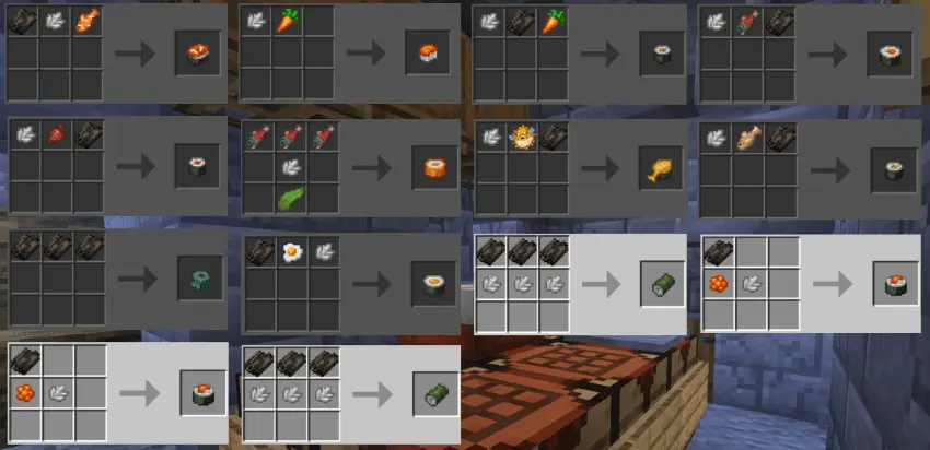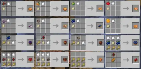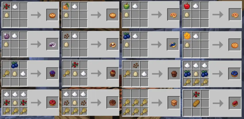 The addon doesn’t just dump items into a menu; it ties them into the world through new berry bushes, crops, and plants. You get eight new berry bushes to scatter around your base or find out in the wild, ten new crops to plug into your farms, and eleven new plants that help make your world look and play differently. On top of that, there are extra block and mob drops feeding into the system, so mining, exploring, and fighting mobs all have a better chance of giving you something useful for the kitchen. Over time, you go from basic bread spam to a whole lineup of cooked meals, baked sweets, and even sushi runs.