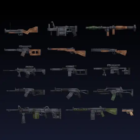 The arsenal is stacked: 23 weapons total, with twenty-two guns and one melee option. You’ve got classics like AK-47, M4 and M16, SMGs like MP5, UMP-45 and Bizon, heavy options like PKM, RPK, MG-42 and an RPG-7, plus shotguns, Glocks, and even a flamethrower for pure chaos. Everything’s modeled in 3D, so when you swap through your hotbar it actually looks and feels like you’re carrying real gear, not retextured sticks.