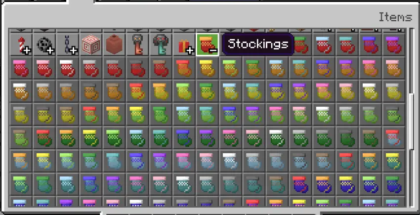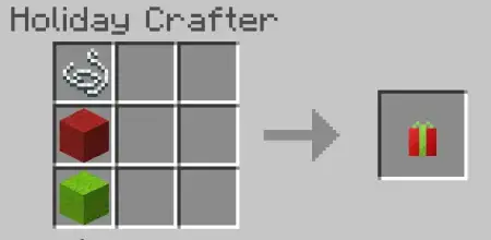 The real fun starts when you craft the Holiday Crafter. It’s a special workstation built from a crafting table plus red and green wool, and it’s your main hub for all the extra seasonal stuff. From there you can make presents that work like temporary shulker boxes: you crouch and use one on a chest to “wrap up” everything inside, then later place the present down and punch it to unpack the loot. It’s perfect for gift drops in a spawn town, secret stashes in your base, or server events where players trade surprise boxes. There are also stockings that behave kind of like bundles, but with a festive look, so even your inventory cosmetics get in on the theme.