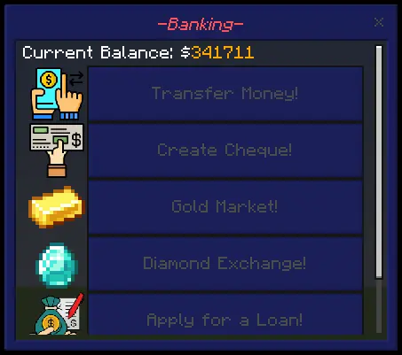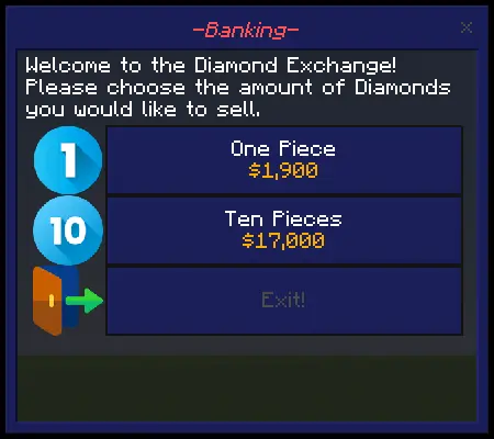 Bank & Exchange Mod is what you drop into a Realm or server when you want money to actually mean something. Instead of sitting on stacks of ores that never leave the chest, players can mine gold, diamonds, and emeralds, open the /banking app, and sell them straight into a proper bank account. The addon gives you a clean menu where you can hit the Gold Market, Diamond Exchange, or Appraisers, cash out your resources, and slowly watch your balance climb like a real economy grind.