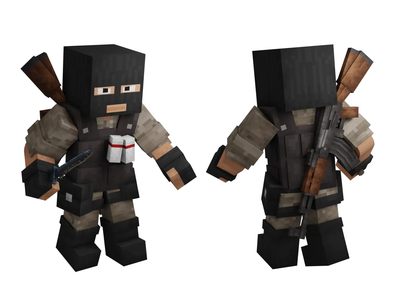 The presentation sells it harder than most NPC add-ons. You get smooth animations, emotive eyes, and radio chatter that makes encounters feel more alive. Kills also have dynamic death and hurt animations based on how and where it was taken out (like a backstab), plus dynamic blood spatter and gore features that add brutal feedback when fights get messy. If you want a Minecraft Bedrock enemy that feels reactive, readable, and genuinely dangerous when you push the difficulty, [CSO] Terrorist NPC Mod delivers that “finally, a real NPC fight” vibe.