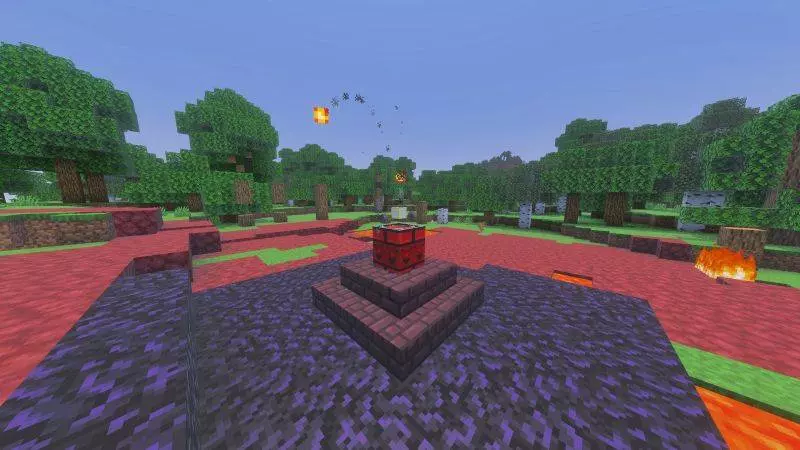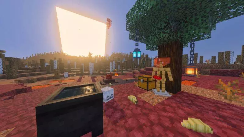Starting the apocalypse is an actual ritual moment, not something that randomly happens. To activate it, you craft a block called Pandora’s Box, place it, and then break it to summon the Totem of Armageddon. The second you do that, the clock starts. You’ve got seven days before the whole environment turns into “hell,” so it’s not instant doom, but it’s also not something you can ignore. It’s like hitting a self-destruct button on your world, except you’re still living in it while it’s counting down.