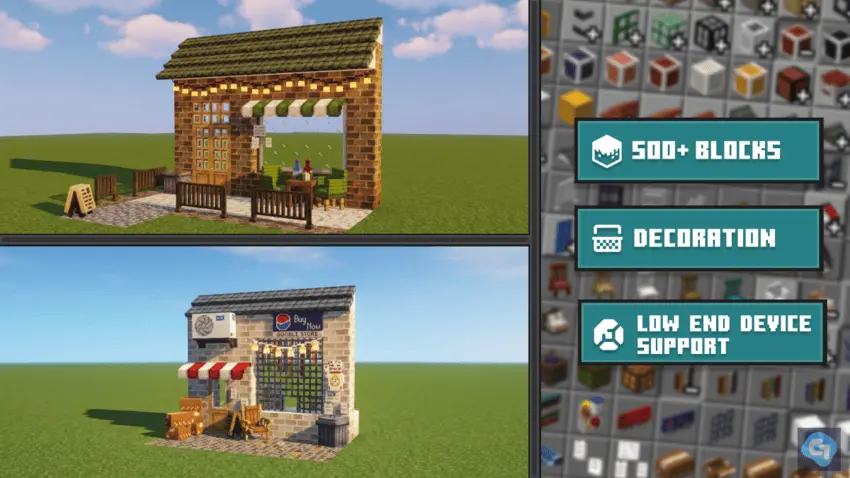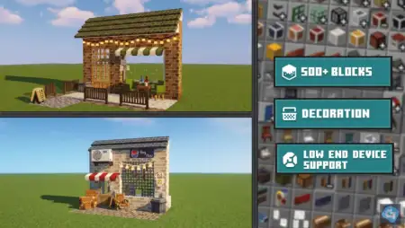 It also calls out support for low-end devices, which is huge if you’re playing on a weaker phone or you’re building a big world and don’t want decoration to turn into lag. Practical tip: if you’re making a neighborhood or a city block, stick to a consistent wall/roof set per area, then change it up in the next district so your builds look planned, not chaotic. And since the project is still ongoing, Gooblideco 2.0 mod is the kind of pack you can keep using long-term as you expand your world’s style over time.