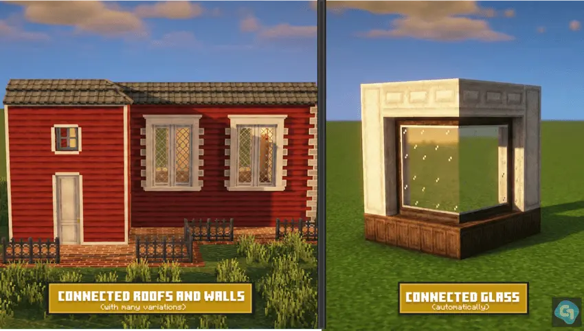 Gooblideco 2.0 mod is a personal project that’s been running since 2025, and it’s clearly aimed at builders who care about the little details that make a world feel real. The pack leans into decorative blocks that are meant to look clean when you place a lot of them together, like connected walls, connected roofs, and connected glass. That “connected” vibe matters because it’s what stops builds from looking like random chunks of blocks and starts making them look like actual architecture.