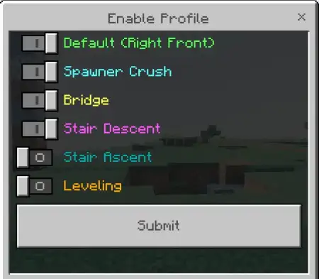 Placing profiles include Default (places right, forward, and upwards, default 4x4x4) for quick fills, Spawner Crush (covers surrounding blocks, used for placing half blocks over a wide area to prevent monster spawning), Bridge (builds a one-block bridge), and Leveling (fills blocks at the same height). Put together, Usefull Addon is basically a Minecraft Bedrock “speed toolkit” that helps with mining, terraforming, and building—fast—without turning it into mindless creative-mode vibes, since durability and block consumption still apply.