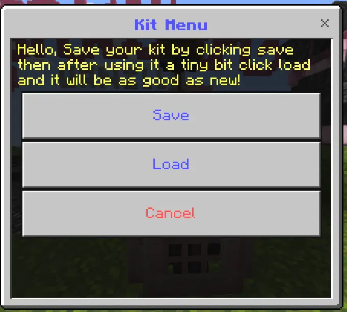 Kit Loader Mod / Addon mine-craft 9-04-2025, 16:47 846 Mods / Addons / Mods 1.21 Kit Loader Minecraft mod download and save kits and then load them.Installation:- Download Mod;- Use Minecraft- Open the downloaded file to install;- Select it in the settings;- Have fun!kit_loader__1_21_7x.mcpack [132 Kb] (downloads: 21)