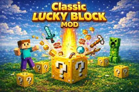 Classic Lucky Block Mod / Addon mine-craft 26-02-2026, 03:54 1 802 Mods 1.26 / Mods 1.21 Classic Lucky Block Addon many new types of classic lucky blocks that can now be crafted in Minecraft Bedrock.Installation:- Download Mod;- Open the downloaded file to install;- Select it in the settings;- Have fun!luckyblock_behres_by_weizhijs_v09_beta2.mcaddon [963.13 Kb] (downloads: 57)