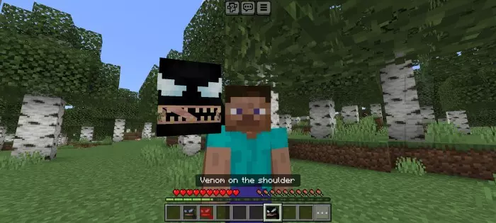 This add-on brings Venom and the symbiote universe into Minecraft. You’ll get three full symbiotes to use: Venom, Riot, and Carnage — each with their own look and powers. You can fully transform into them and unlock special abilities tied to each form.