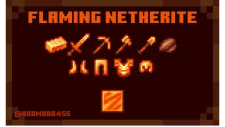 Flaming Netherite Texture Pack is a style-focused retexture pack built around one clear idea: netherite should look less metallic, so this pack puts it on literal fire. That concept is simple, but it gives the whole set a much stronger identity than a normal recolor. If you like visual packs that make specific gear stand out the second you equip it, this one has a very clear theme.