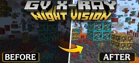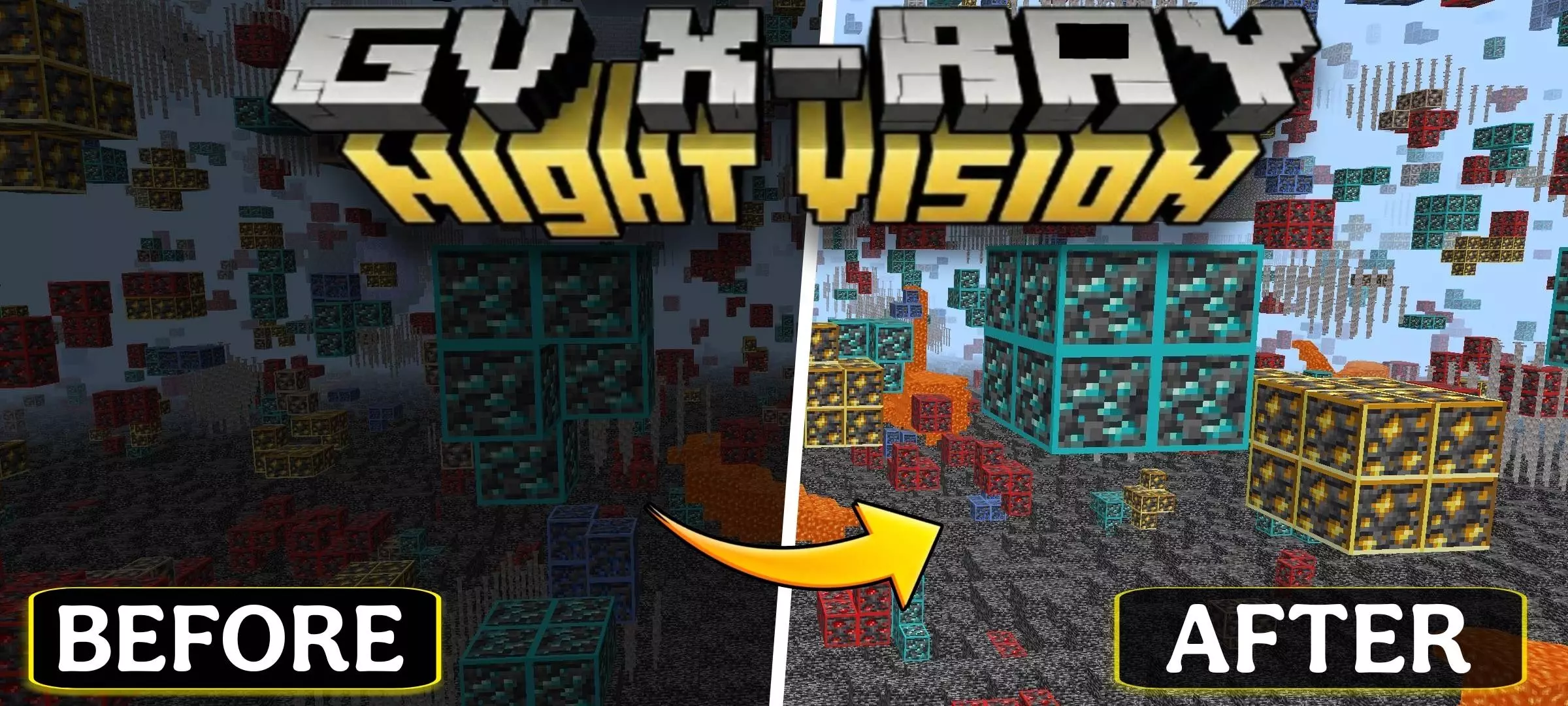 X-Ray with Night Vision - Addon improved X-Ray experience and will add night vision to the game Minecraft Bedrock.