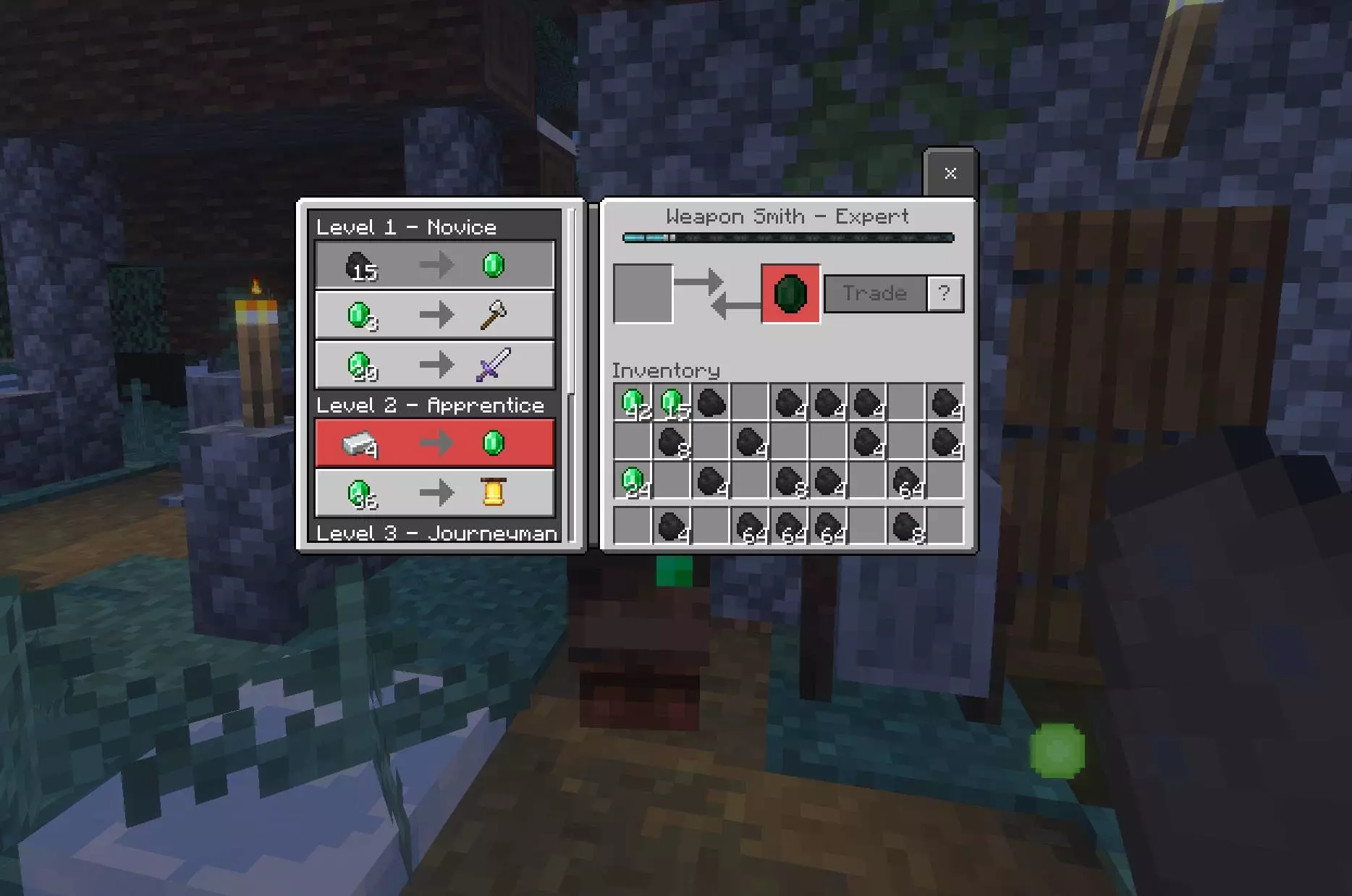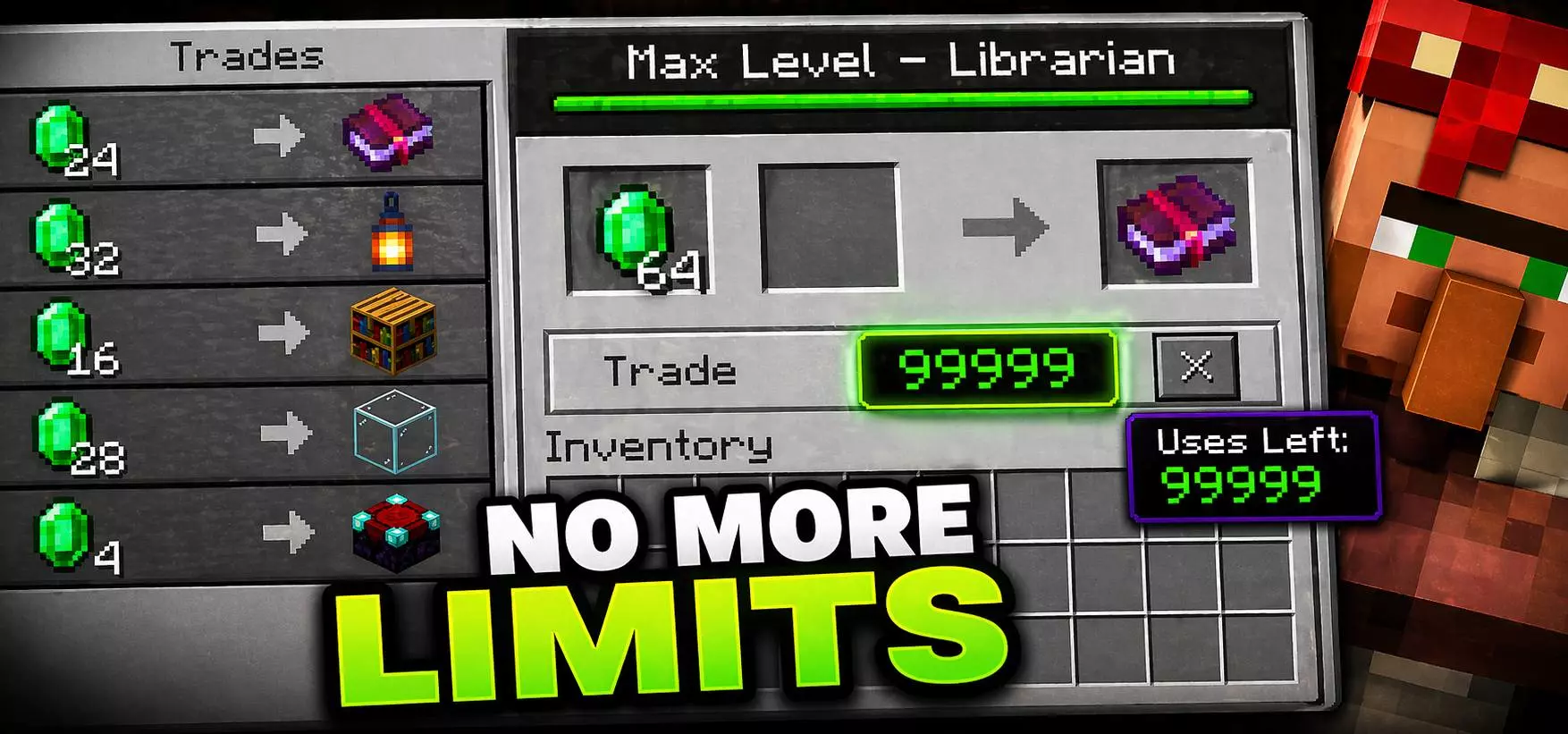 Trading Remastered Addon removes all limits on trading with villagers in Minecraft Bedrock.