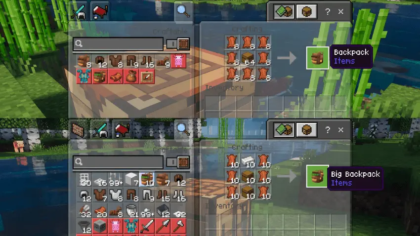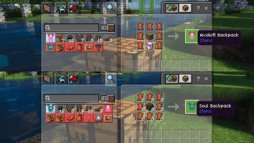 Better Backpacks Addon craft very interesting and cool backpacks in Minecraft. There is even Axolotl Backpack and Soul Backpack. These are roomy and improved backpacks.