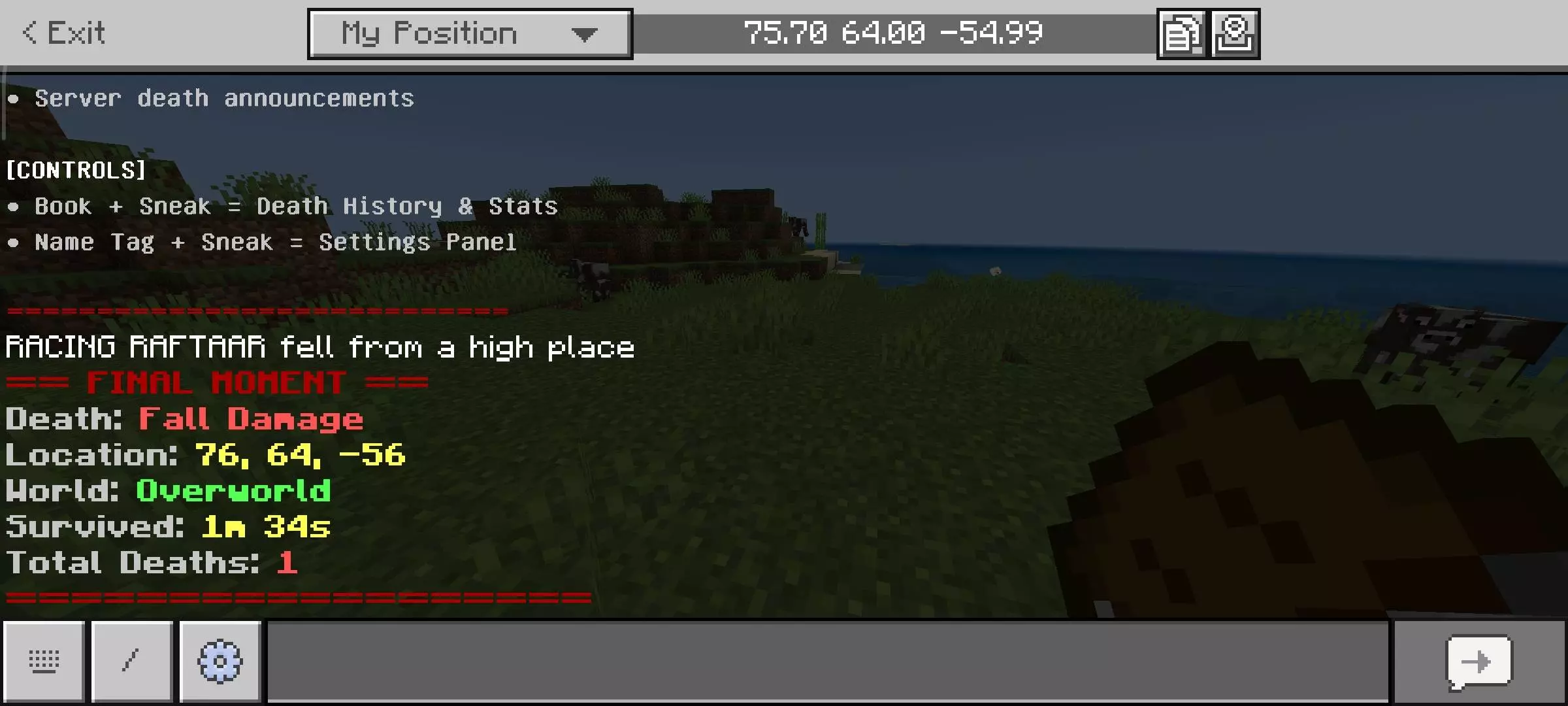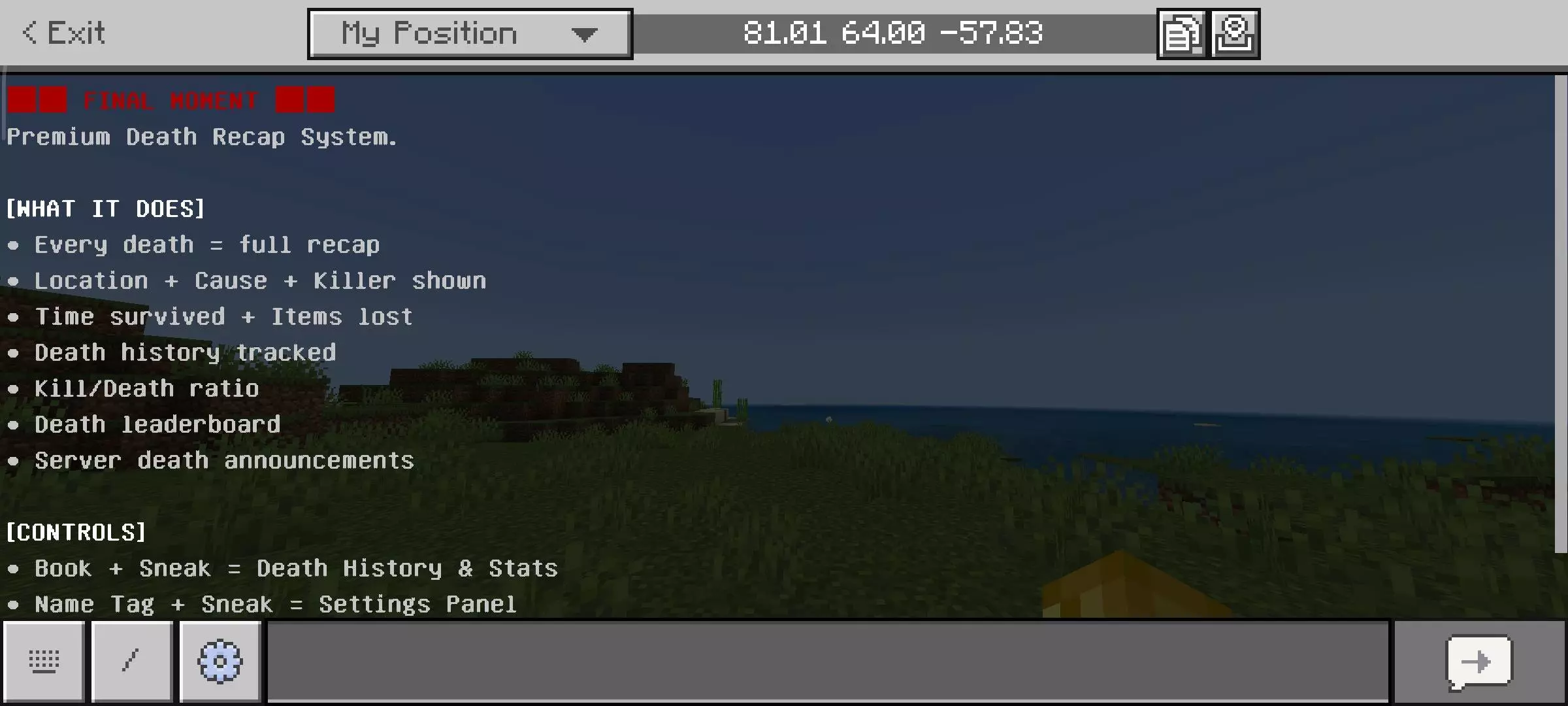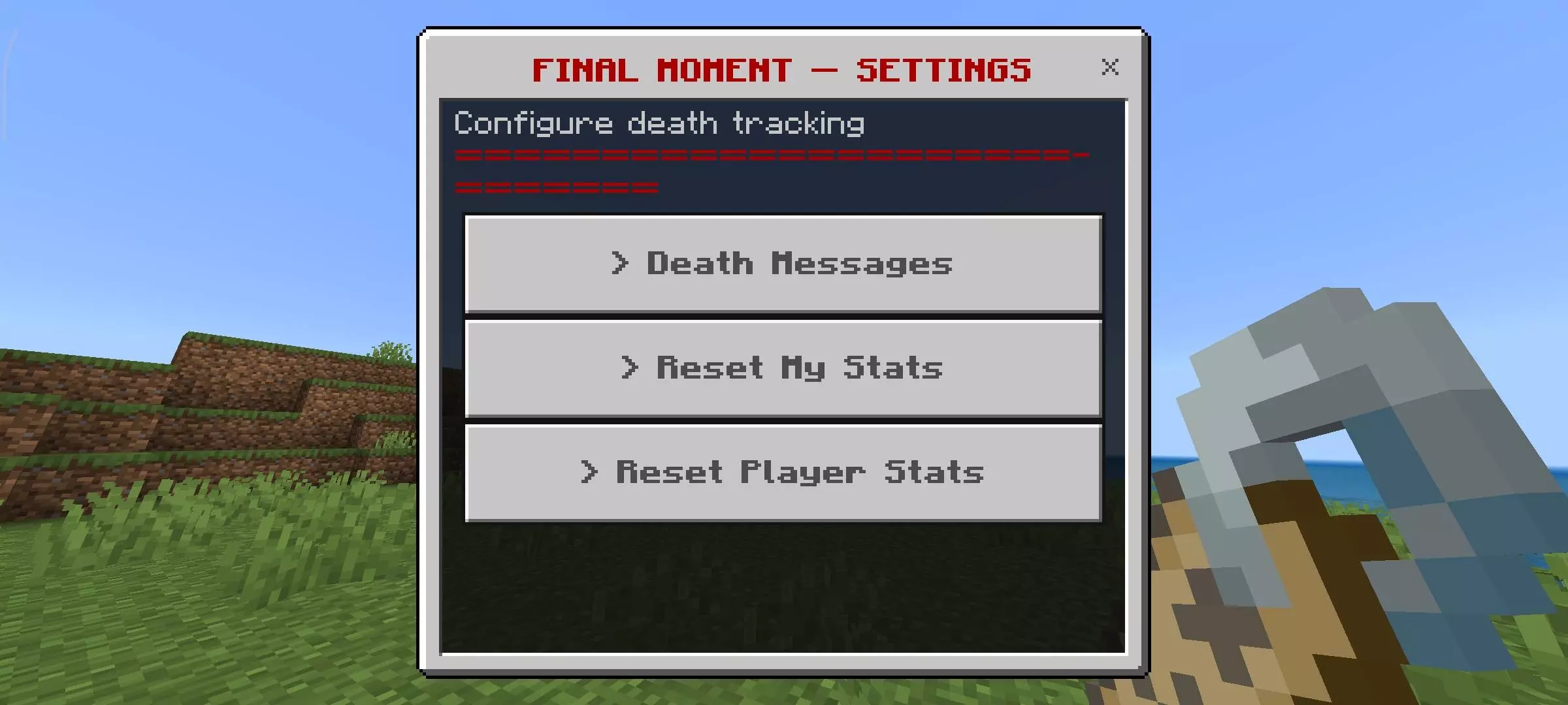 Final Moment - Death Recap Mod will show all statistics and information about the player's game after his death in Minecraft.