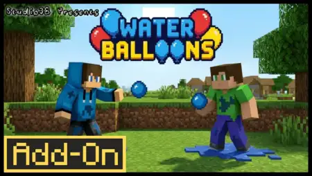 Water Balloons Mod adds craftable water balloons that splash on impact, drench enemies, and extinguish fires, turning Minecraft Bedrock into a full-on prank arena. It also comes with custom splash sound effects and dyeable variants so you can color-code the chaos.