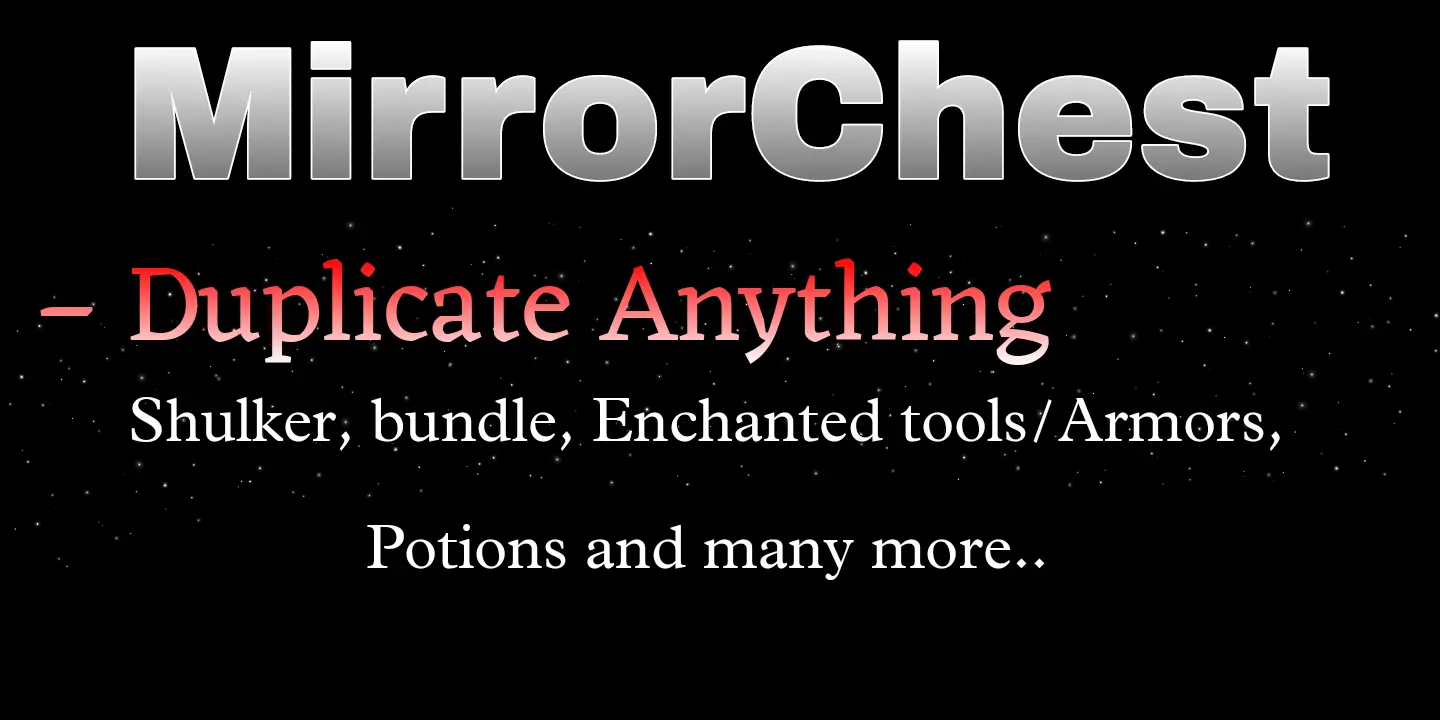 MirrorChest Mod is a Minecraft Bedrock addon that adds a craftable block designed to duplicate items over time, including enchanted gear, potions, arrows, blocks, and other rare items. MirrorChest Mod is built as a passive utility system, letting you place the block, load it with items, and wait while it handles duplication in the background.