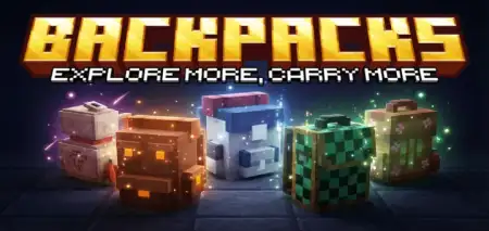 BONY162's Backpacks Mod is a Minecraft Bedrock backpack add-on where you wear the backpack in your off-hand, swap it by hitting a placed backpack to auto-equip, and use an upgrade menu to add Extra Storage pages, a Magnet pickup toggle, a Security Lock for ownership, and an Auto-Sort button.