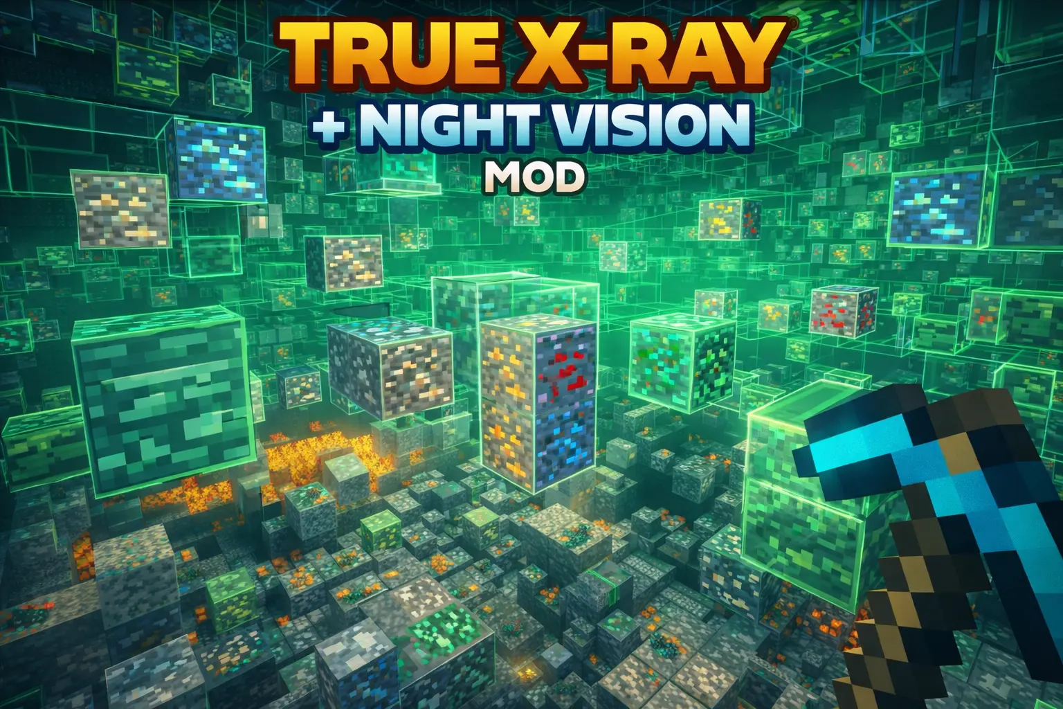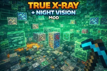 True X-Ray + Night Vision Mod is a lightweight Minecraft Bedrock resource pack that makes ores easier to see with night-vision-style visibility and subtle texture/lighting tweaks, keeping achievements on since it doesn’t require a behavior pack.