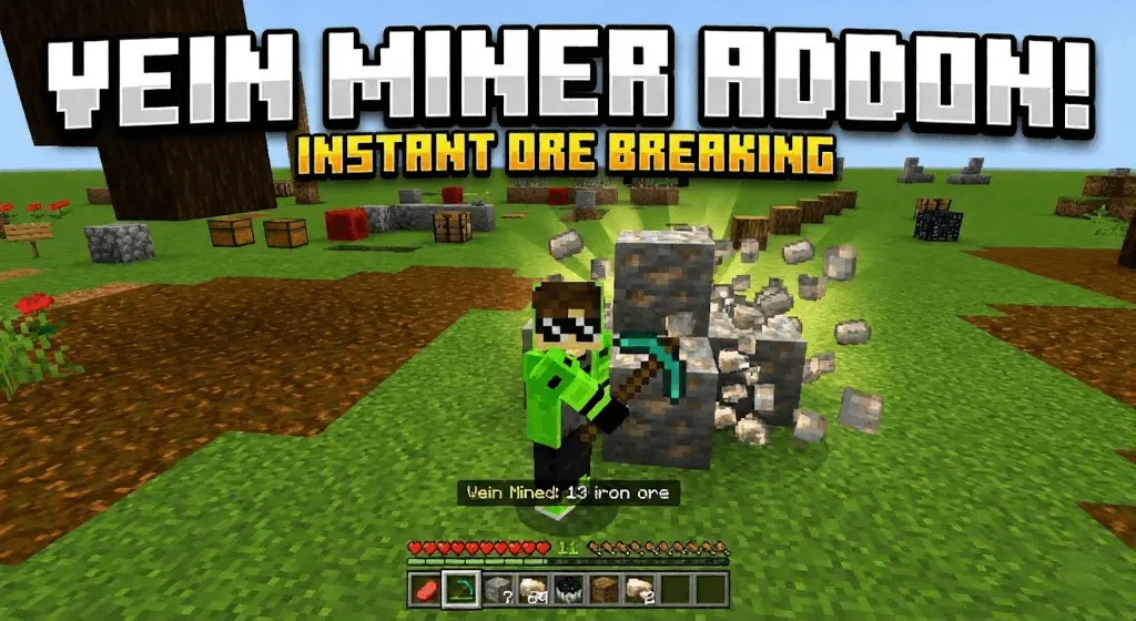 Vein Miner "Break a whole vein" Mod is a survival-focused Minecraft Bedrock mining addon that lets you mine an entire ore vein at once by sneaking and breaking one ore with the correct tool, automatically detecting and mining connected ores in a controlled, balanced way.