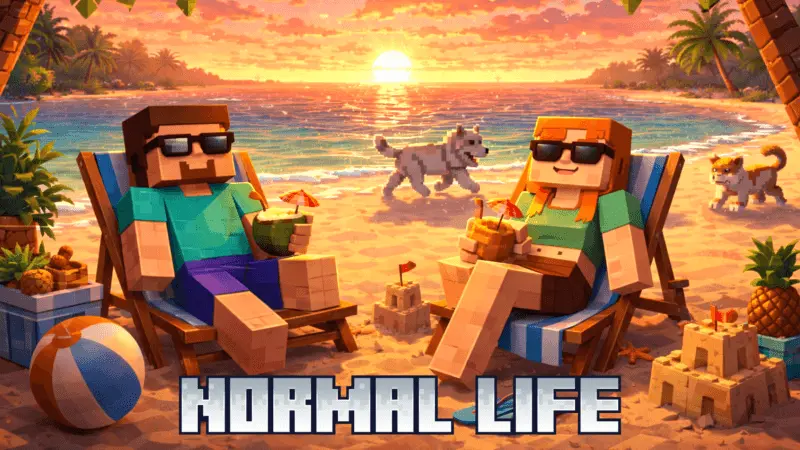 Normal Life Mod is a “vacation mode” style addon for Minecraft Bedrock where most hostile mobs stop spawning, but it’s not Peaceful—some mobs like spiders, slimes, Blazes, Wither Skeletons, and Illagers can still appear.