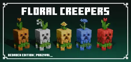 Floral Creepers Addon / Texture Pack is a Bedrock Edition port that turns creepers into short, colorful petal creatures with flowers on top, featuring about 17 different Floral variants.