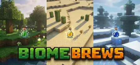 Biome Brews Mod adds throwable biome bottles for Minecraft Bedrock that let you change terrain on the spot—toss one and a small area becomes a new biome with matching blocks, plants, trees, and even a few fitting mobs.