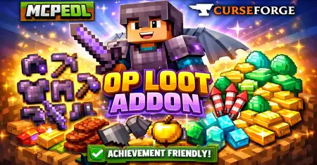 OPStarter Kit Addon hooks you up with a one-time, automatic starter kit the first time you spawn, packed with OP Netherite gear, fully enchanted weapons, and Elytra fireworks to get moving fast.