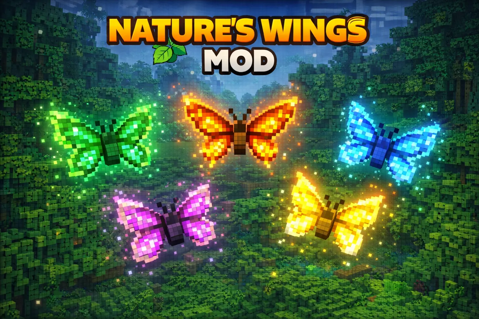 Nature's Wings Mod is a butterfly addon that adds 5 unique butterfly species that naturally spawn, flutter around flowers, and make your Minecraft world feel way more alive in the Overworld and caves.