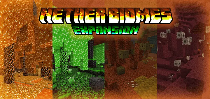 Nether Biomes Expansion Mod — adds four new, vanilla-style Nether biomes with Achievements enabled; install both BP and RP to explore fresh terrain without breaking the game’s core feel.