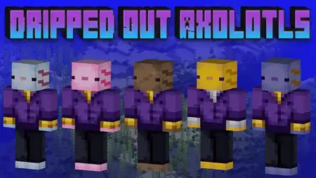 Dripped Out Axolotls Skin Pack — stylish axolotls in tailored fits for Minecraft Bedrock, ready to steal the spotlight in lobbies, raids, and photo ops. I swapped into the pink one, dove off a pier, and it just clicked: you’re not another default running around the docks—you’re the host of tonight’s underwater gala. Each axolotl shows up in a crisp suit with its own vibe, so you can match your look to whatever you’re doing, from building a coral-side café to speed-clearing a monument with your crew.