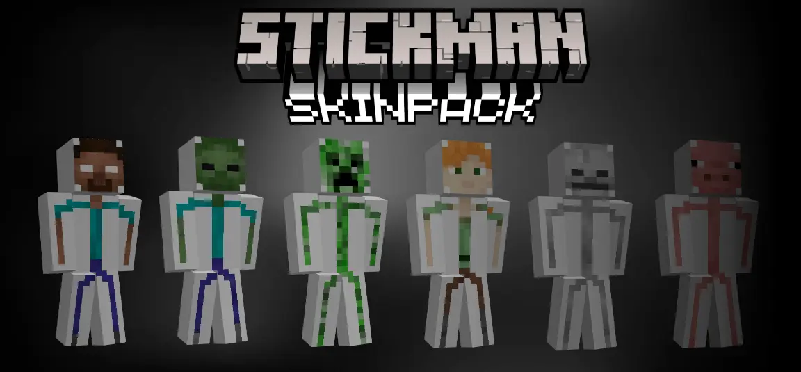 Stickman Collection Skin Pack — laser-simple skins that turn Minecraft Bedrock into a sketchbook you can run around in. Think classic stick figures: clean outlines, bold shapes, zero clutter. I swapped into one and the game instantly felt lighter. Your character reads from across a field, screenshots look intentional, and you’re not fighting noisy textures when you sprint, build, or record clips.