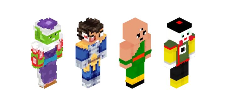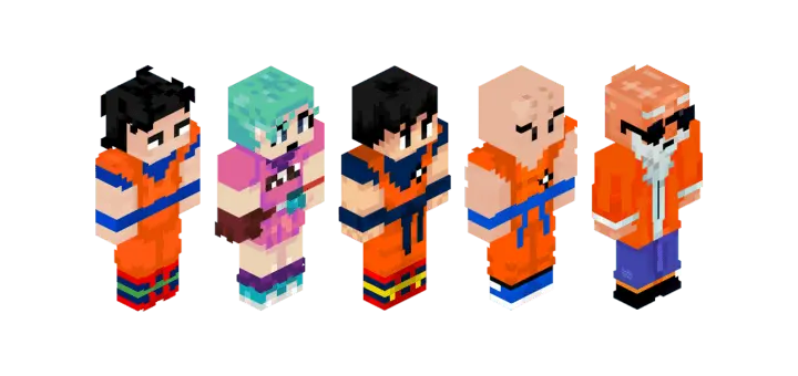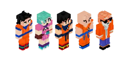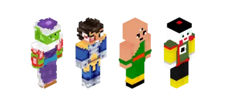 Dragon Ball Z Skin Pack — a character bundle that lets you drop straight into Minecraft Bedrock looking like you fell out of a tournament arc. It’s a tight roster of nine recognizable heroes and villains, tuned for clean silhouettes and that unmistakable spiky-hair, battle-armor vibe. I threw it on for a survival night and the tone shifted instantly: same crafting, same fights, but the squad looked like a squad.