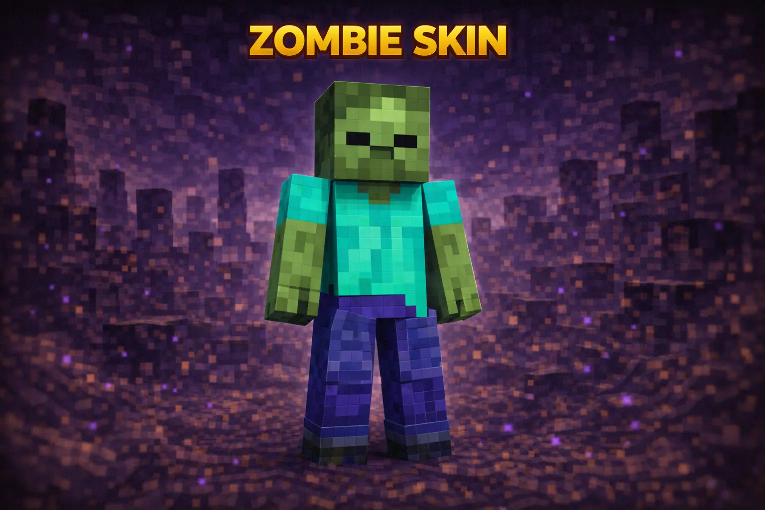 In survival, Zombie Skin fits literally anywhere. It doesn’t clash with builds, it looks fine in any biome, and it still reads clearly even when you’re wearing armor. If you want an easy, iconic skin that feels like pure Minecraft energy, Zombie Skin is a solid go-to.