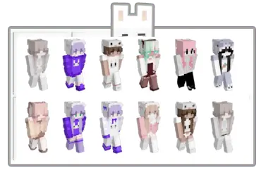 If your Bedrock world needs a mood lift, the BUNNY SKINPACK (the “BUNNY ONE” set) does it the second you load in. It leans into soft pastels, cozy hoodies, and those unmistakable bunny ears that bounce in screenshots, so your character reads cute and clean from hub spawns to survival bases. I swapped into a lavender bunny fit on a spring-themed server night and the whole plaza instantly felt brighter—flowers, dyed banners, and the skin’s color palette all clicked like we planned it.