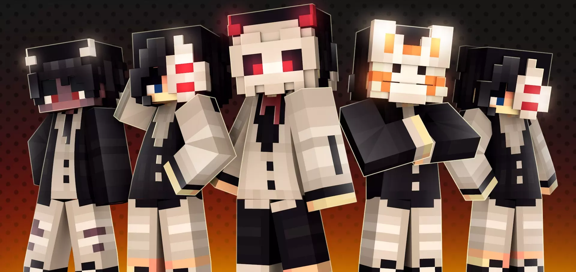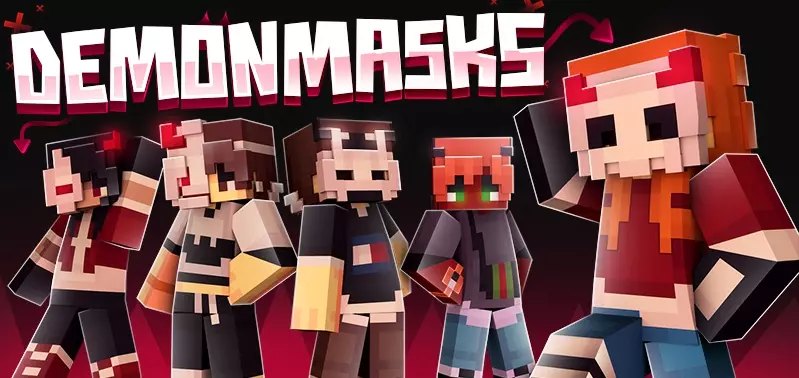 Demon Masks Skin Pack is a Minecraft Bedrock skin pack with 7 demon-themed skins featuring glowing horns and creepy masks for a darker, more intimidating look. Demon Masks Skin Pack is great if you want a spooky character style that stands out in survival, PvP, or server hangouts.