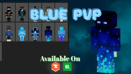 PVP Collections: BLUE Skin Pack is a blue-themed PvP skin set with clean designs, dark base tones, and sharp contrast made for visibility in fast Bedrock Edition combat. PVP Collections: BLUE Skin Pack is a solid pick if you want a competitive look that stays readable while you move and fight fast.